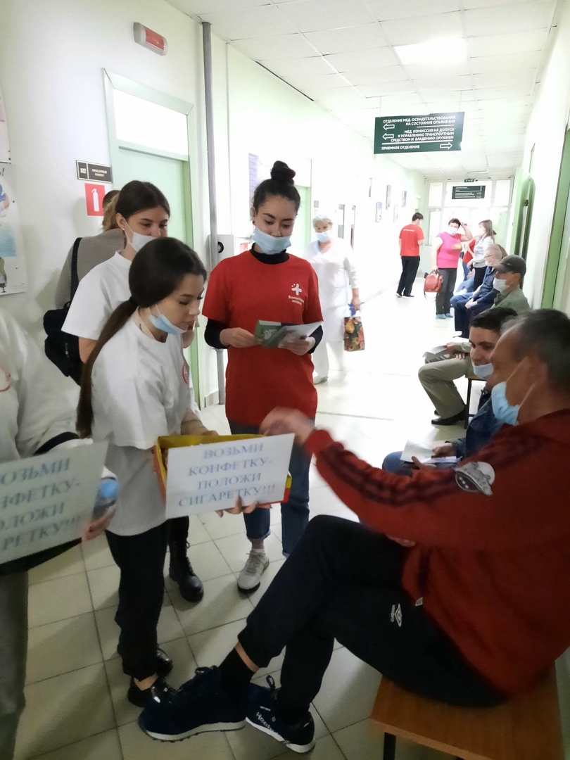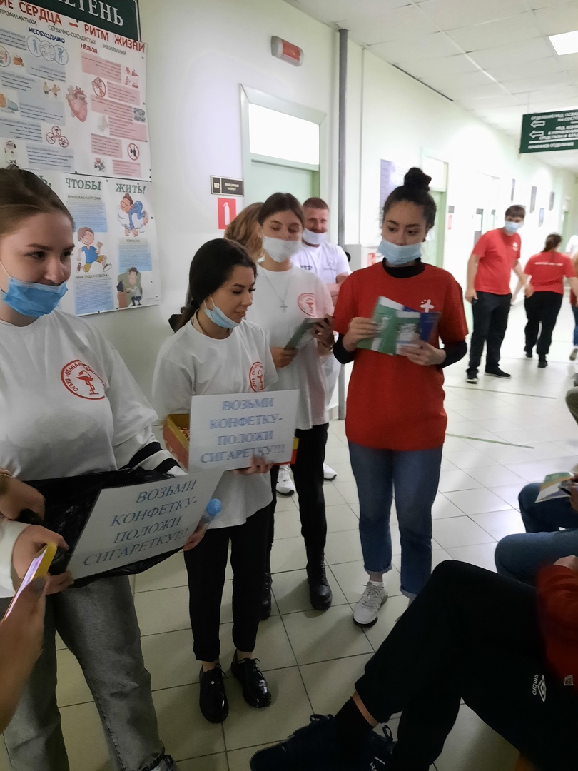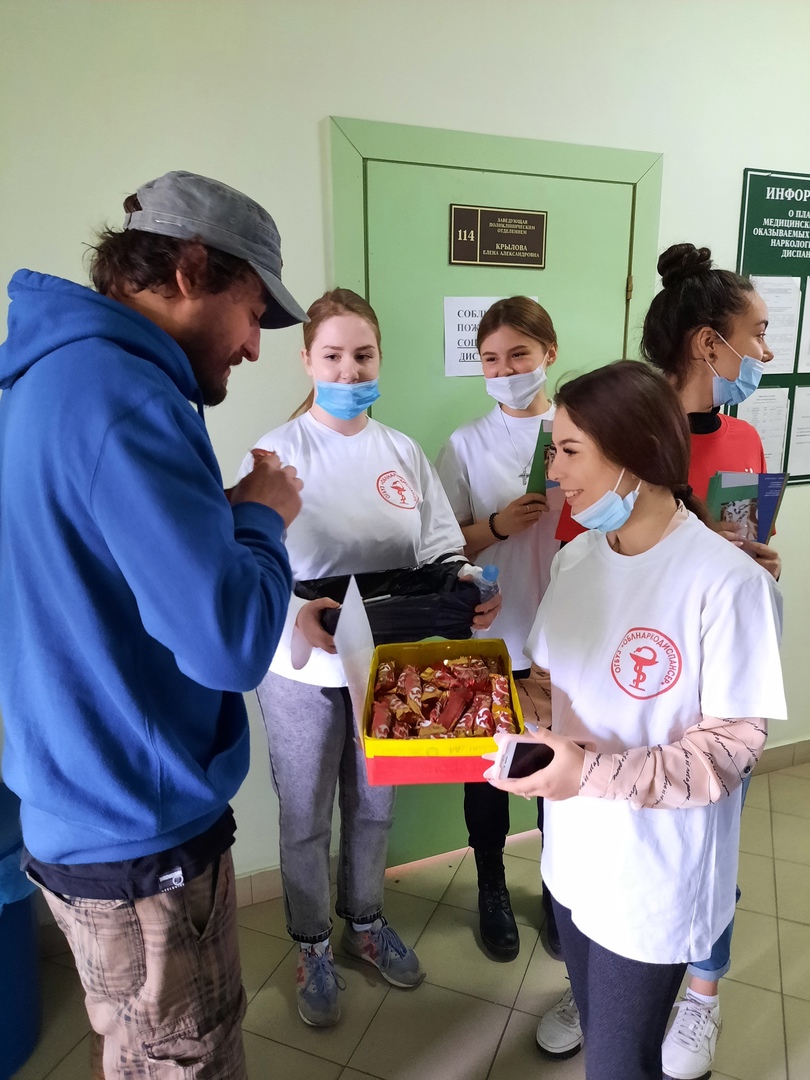 Студенты были волонтёрами и слушателями лекции по вопросам зависимостей и их вреда. Мероприятие прошло успешно, многие посетители наркологического диспансера откликнулись на акцию и с удовольствием отказались от сигарет в пользу конфет. На лекции познакомились со статистикой проблемы зависимостей и новых фактах о зависимостях.