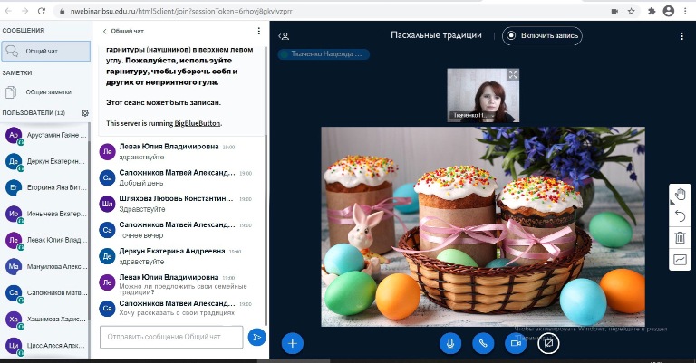 Особый интерес у студентов вызвало знакомство с пасхальными традициями разных стран (Узбекистан, Эквадор). Участники обсуждения отметили, что подобные мероприятия объединяют и позволяют ощущать сопричастность и интерес к жизни друг друга.