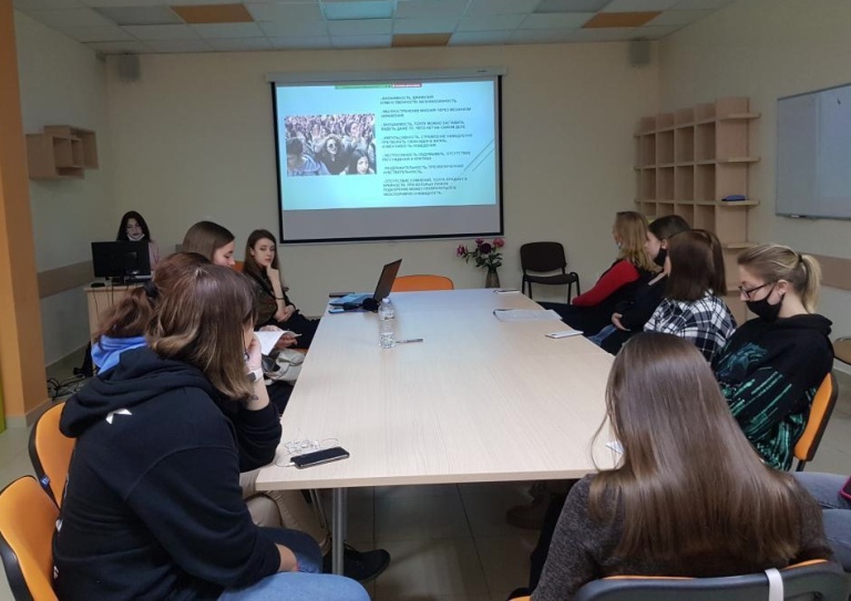 16.12.2021 СНО факультета психологии организовало научный семинар «Митинги и их психологический смысл» в комбинированном режиме – часть участников приняли участие в режиме онлайн. Организаторы мероприятия, Соломатина Юлия и Бабаева Анна, студенты группы 02061702, обусловили выбор темы событиями, происходящими сейчас во всем мире. На мероприятии присутствовали доцент кафедры социальной и возрастной психологии, председатель СНО Доронина Наталья Николаевна, и ассистент кафедры общей и клинической психологии, Гринева Ольга Ивановна, член Ассоциации выпускников НИУ «БелГУ».