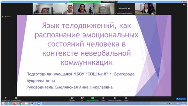 18 декабря 2021 г. на базе ОГАОУ ОК «Алгоритм Успеха» Белгородской области был проведен региональный конкурс исследовательских и проектных работ школьников «Высший пилотаж». В состав экспертной комиссии вошли преподаватели факультета психологии педагогического института.