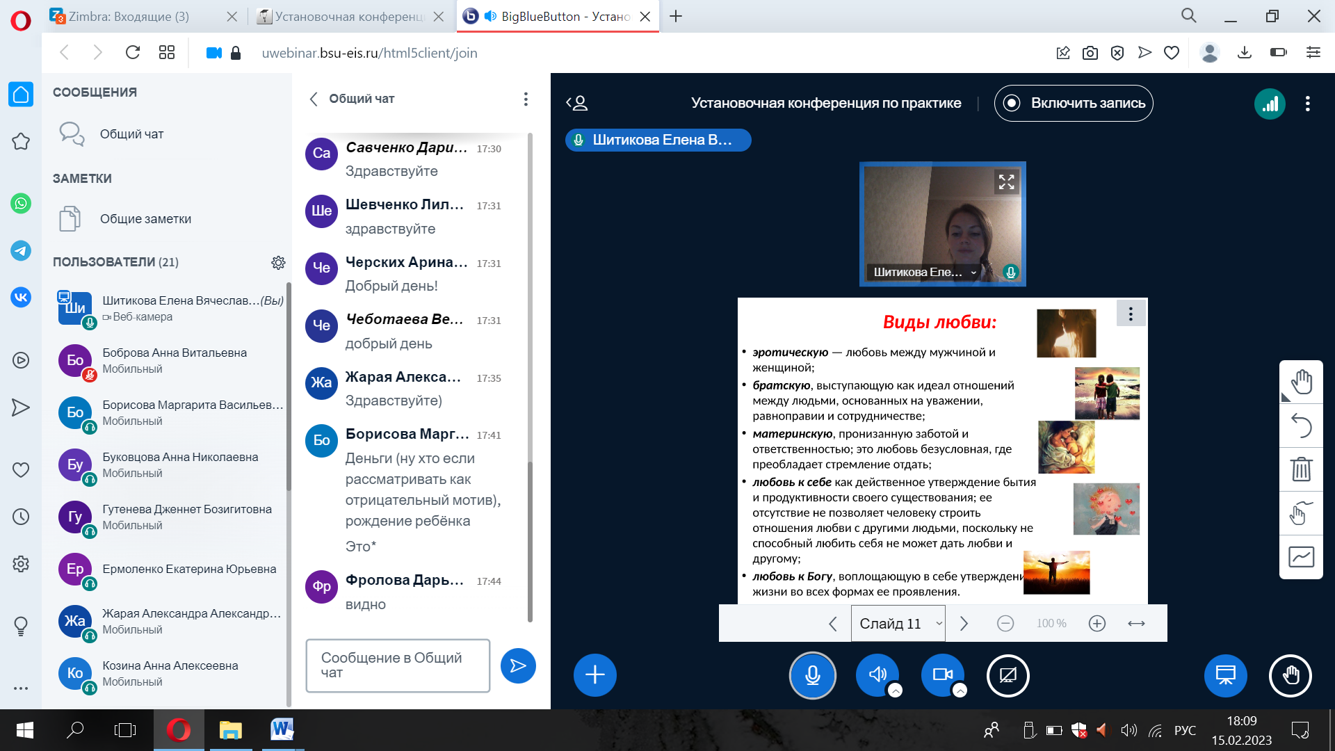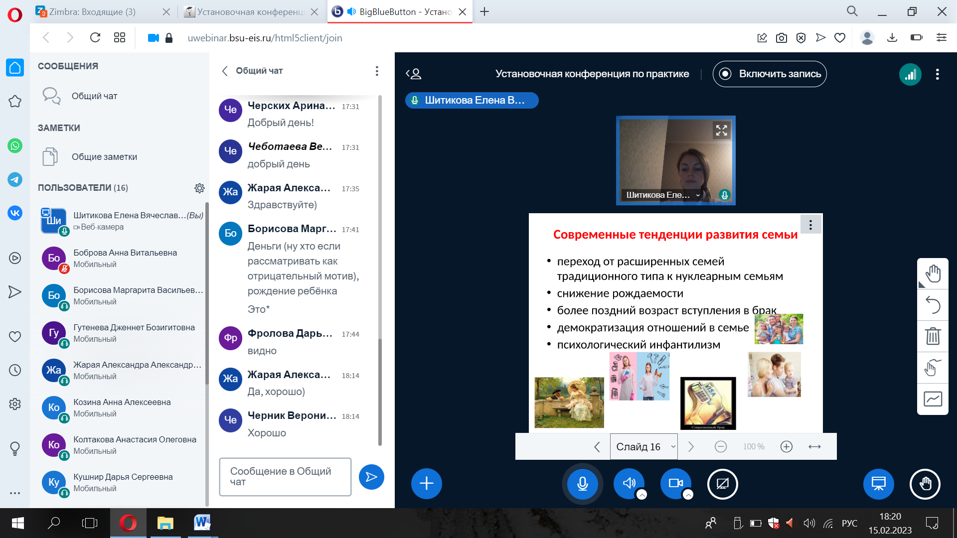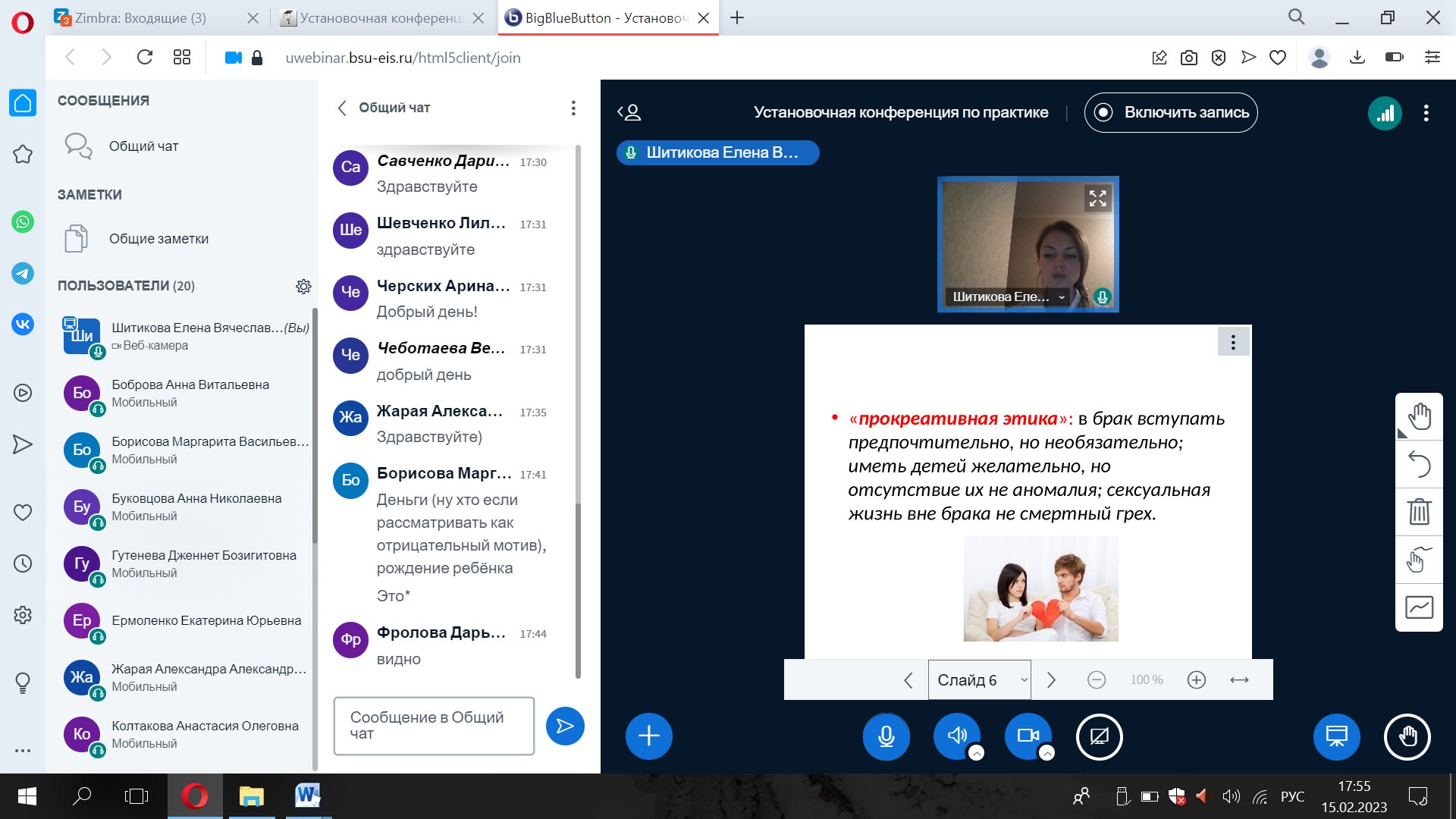 15.02.2023 г. на базе факультета психологии педагогического института НИУ «БелГУ» состоялось первая тематическая встреча семейного клуба «Счастливая семья». Одной из основных целей деятельности семейного клуба является развитие готовности молодых людей к семейной жизни. Целевая аудитория, прежде всего, молодые люди – девушки и юноши, которые осознанно подходят к проектированию своего жизненного пути, и построение крепкой семьи и благоприятных семейных отношений является для них одной из приоритетных задач.
