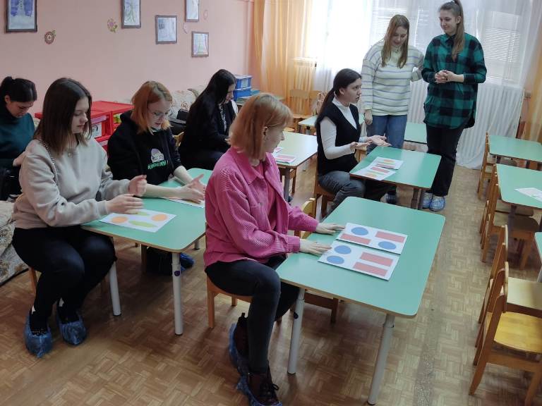 Первокурсники познакомились с основами работы педагога-психолога в дошкольной образовательной организации, организацией процесса эффективного сопровождения групп компенсирующей направленности. Им было показано развивающее занятие психолога с дошкольниками, имеющими тяжелые нарушения речи. Они стали участниками мастер-класса по развитию межполушарных связей у дошкольников с тяжелыми нарушениями речи.