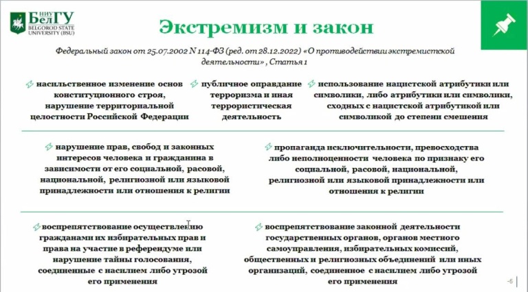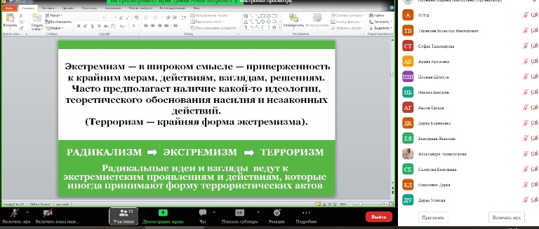 22.06.2023 студенты факультета психологии приняли участие в онлан-лекции по профилактике экстремизма, которую провел старший преподаватель кафедры международных отношений, зарубежного регионоведения и политологии Роман Андреевич Травин.
