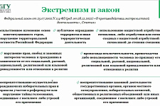 Роман Андреевич рассказал слушателям о радикальных взглядах, понятии экстремизма и терроризма. Для наглядности он продемонстрировал правовые положения об экстремизме, которые закреплены на законодательном уровне. Кроме того, он привел примеры политического регулирования экстремистских идей на территории Великобритании, Франции и США, рассказал про политическую борьбу с экстремизмом в России и других странах мира. Было заявлено, что данная проблема нарушает принципы этики и гуманизма. Она не может решаться силовым путём, так как будет порождать ещё больше насилия.