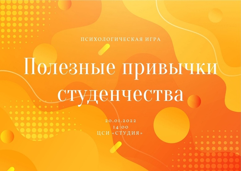 20 января Студенческая психологическая служба провела психологическую игру: «Полезные привычки студенчества». На встрече студенты обсудили, какие же есть полезные привычки, и как можно «привить» их к своему образу жизни.