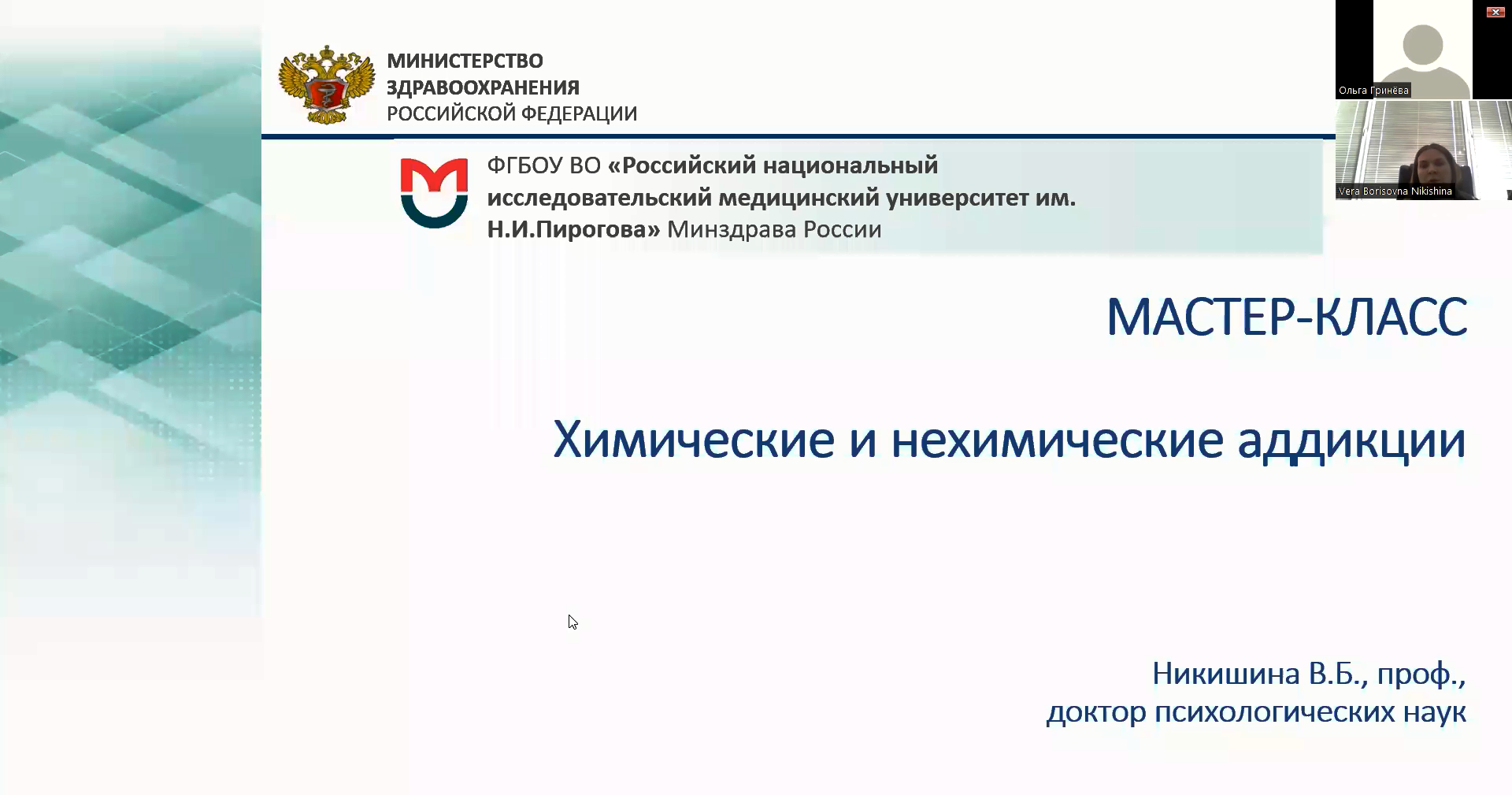 14 апреля прошел мастер-класс «Работа психолога с лицами, склонными к химическим и нехимическим аддикциям», который провела в режиме онлайн профессор Российского национального исследовательского медицинского университета им. Н.И. Пирогова Минздрава России, доктор психологических наук Никишина Вера Борисовна. Студенты факультета психологии ознакомились с современным взглядом на проблему девиантного поведения несовершеннолетних, компетенций психологов в этом междисциплинарном поле деятельности. Как выглядят разные виды аддикций? Как проявляются и каким психологическим изменениям подвергается человек в аддикции? На все эти вопросы в процессе мастер-класса ответили слушатели вместе с Верой Борисовной. Статистические данные и опровержения главных мифов в вопросах разных видов зависимости. Также поднимался вопрос важности профилактики аддиктивного поведения среди несовершеннолетних, необходимости информирования родителей детей младшего школьного и даже дошкольного возраста о проявлениях разных видов девиаций.