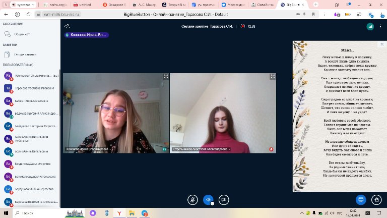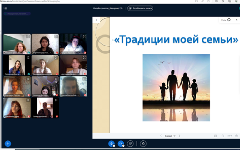 Для студентов 2 курса историко-филологического факультета, факультета иностранных языков, факультета математики и естественнонаучного образования педагогического института в рамках Года семьи были проведены воспитательные мероприятия в режиме онлайн.