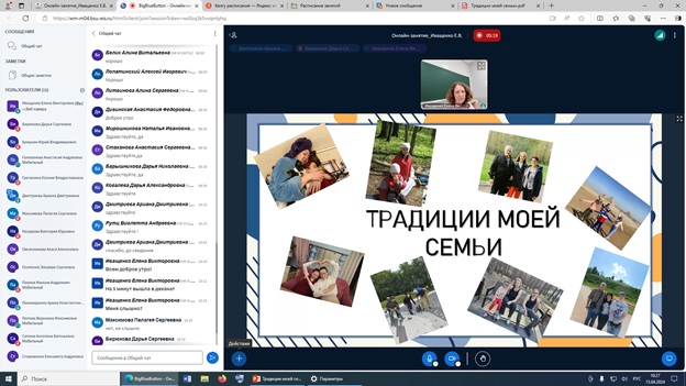 Будущие педагоги с огромным желанием представили сборник авторских стихотворений «Семья – любви великой царство» (гр. 02032201, доц. Тарасова С.И.); дискутировали по вопросам семьи, брака, отношений «Вместе навсегда» (гр. 01042201, проф. Ерошенкова Е.И.), «Семья – основа общества: культура общения и ценности семейных отношений» (гр. 02032205, доц. Рыжкова Ю.П.); презентовали семейный альбом «Когда семья вместе – и сердце на месте» (гр. 02032202, доц. Тарасова С.И.); отвечали на вопросы викторины «Семья и семейные ценности» (гр. 02052207, 02052208, 02042203, доц. Муромцева О.В.); представляли семейные традиции «Это у нас семейное» (гр. 02052203, 02052204, ст. преп. Анохина С.В.), «Традиции моей семьи» (гр. 02052209, доц. Иващенко Е.В.); презентовали праздничную культуру семьи «Семейные праздники: счастливы вместе» (гр. 02042208, доц. Тарасова С.И.); рассуждали, делились представлениями о понятии «семья» «Крепка семья – крепка Россия» (гр. 02052205, 02052206, доц. Годовникова Л.В.); выступили в фестивале презентаций «Крепка – семья крепка Россия» (гр. 02052201, 02052202, 02042207, доц. Ильинская И.П.).