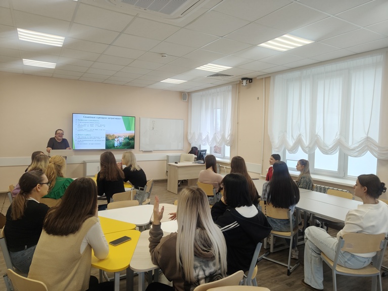 В рамках «Университетской среды» доценты кафедры возрастной и социальной психологии Ткаченко Надежда Степановна и Зиборова Елена Игоревна для студентов, обучающихся по направлению подготовки «Психолого-педагогическое образование», провели интерактивную лекцию «Сценарии, законы и мифы семейной жизни». На основе информации из лекции о сценариях, законах и мифах семейной жизни студентам были предложены кейс-задачи по анализу разных типов семейных сценариев и приемов работы психолога по «разрушению» семейных мифов.