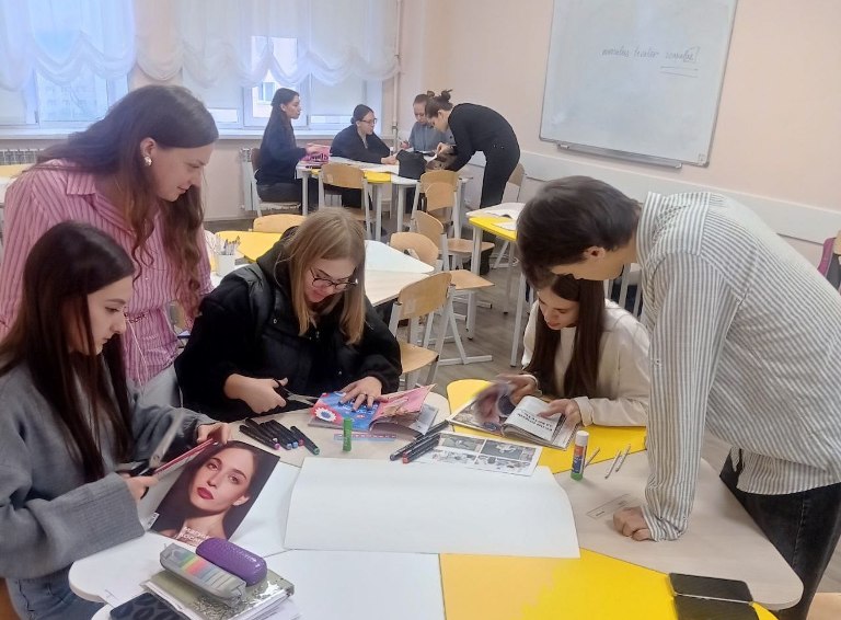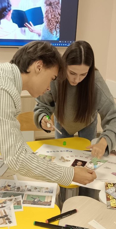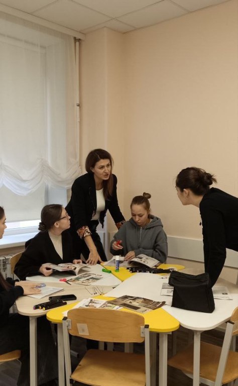 Интересным для студентов стало задание, направленное на составление образа педагога, справляющегося с эмоциональным выгоранием, с помощью арт-терапии в технике коллажирование. Коллажи, созданные студентами, отражали личностные характеристики педагога, а также ресурсы, помогающие снизить риски возникновения эмоционального выгорания.